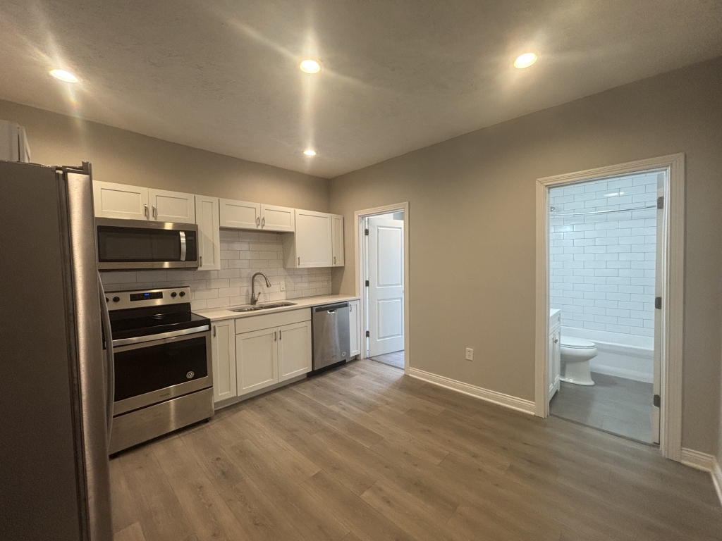 This beautifully updated Duplex in the sought-after Bates-Hendricks neighborhood features sleek luxury vinyl plank (LVP) flooring, recessed lighting, and abundant natural light throughout. TV and Entertainment station also included for a beautiful modern living room feel. Gorgeous brand new sliding “barn doors” added for privacy and separation. The kitchen is a true highlight, boasting granite countertops and stainless steel appliancesincluding a refrigerator, stove, built-in microwave, and dishwasherall included with the rental. Just off the kitchen, you’ll find a dedicated laundry room complete with a washer and dryer for your convenience. Outside, enjoy the charm of a well-maintained neighborhood with easy access to downtown, dining, and shopping.
