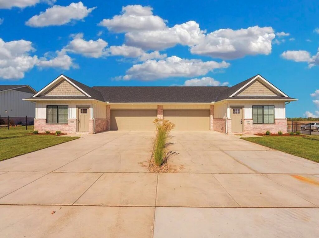 Brand new Class A duplex. Each unit is 3-bedroom, 2-bathroom, 2-car garage and are located in the charming town of Goddard, KS (suburb of Wichita). This property boasts a range of modern amenities that cater to a comfortable and convenient lifestyle. The home features a spacious fenced yard, perfect for outdoor activities and secure off-street parking in a 2-car garage. Inside, you’ll find washer/dryer connections for your laundry needs, and a kitchen equipped with stainless steel appliances, including a gas range, for all your culinary adventures. The kitchen is further enhanced with sleek quartz countertops, adding a touch of elegance to the space. The home also comes with an irrigation system, ensuring a lush and green yard all year round.